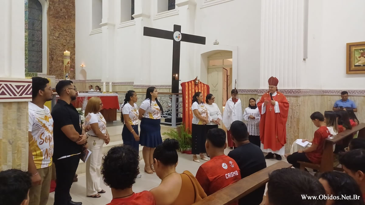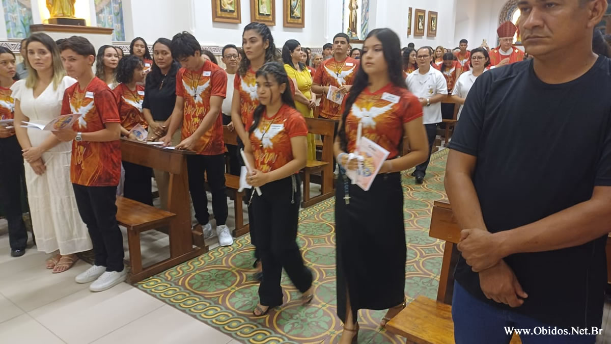 ÓBIDOS – A Catedral de Sant’Ana foi palco, neste sábado (29), de um momento marcante para a Igreja Católica em Óbidos. Durante celebração presidida por Dom Bernardo Johannes Bahlmann, bispo da Diocese de Óbidos, 61 jovens receberam o Sacramento do Crisma, reunindo familiares, padrinhos e a comunidade católica obidense.