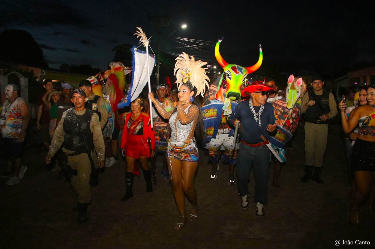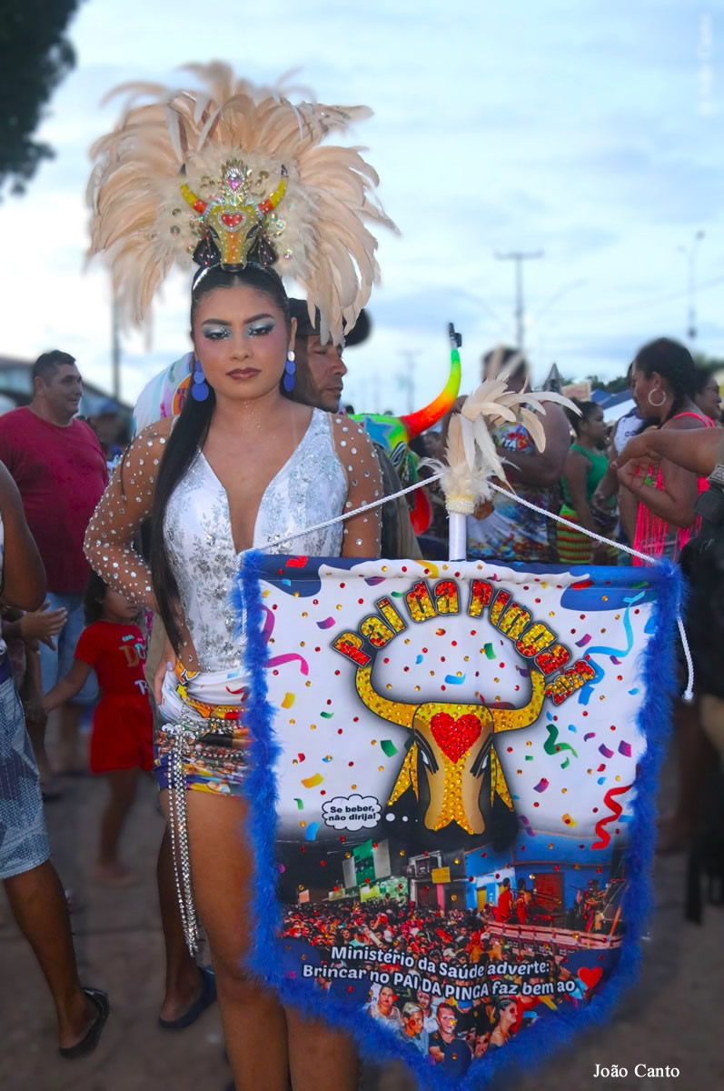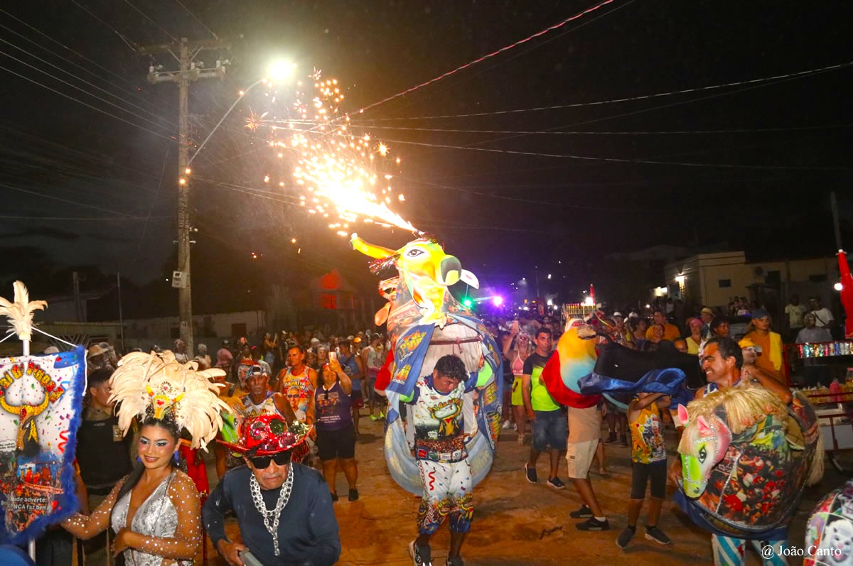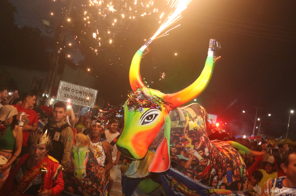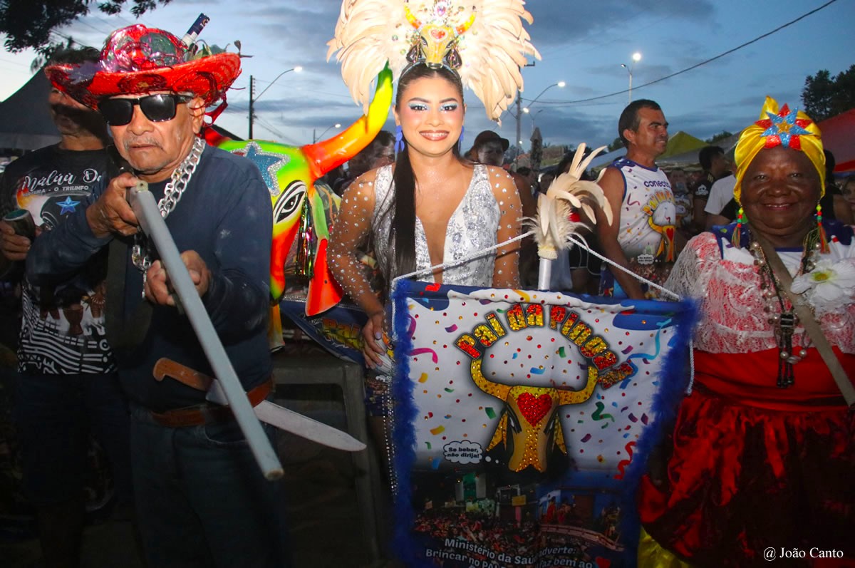 Um dos grandes símbolos do bloco é o boi, que remete aos tradicionais bois da quadra junina, como o “Pintadinho” e o “Pai do Campo”, resgatando memórias e tradições antigas que por muitos anos encantaram a população de Óbidos.