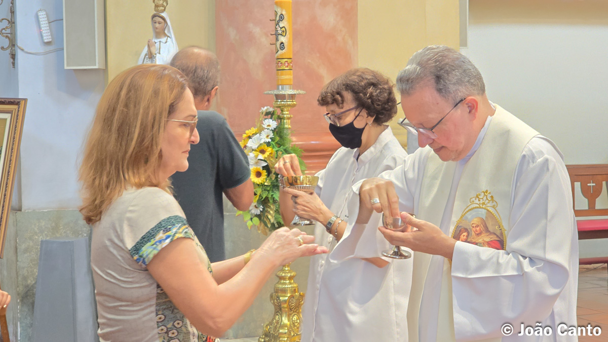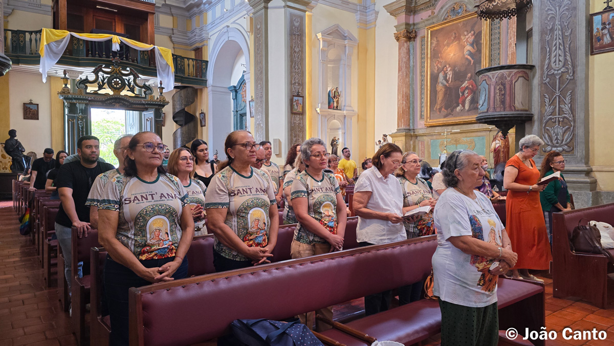 A celebração teve início às 12h, organizada pela Coordenação da Peregrinação e celebrada pelo Cônego Antônio Beltrão. A igreja ficou repleta de fiéis devotos de Sant´Ana, que participaram do momento de oração e acolhida, demonstrando a forte ligação religiosa e cultural com Sant’Ana, padroeira do município de Óbidos.