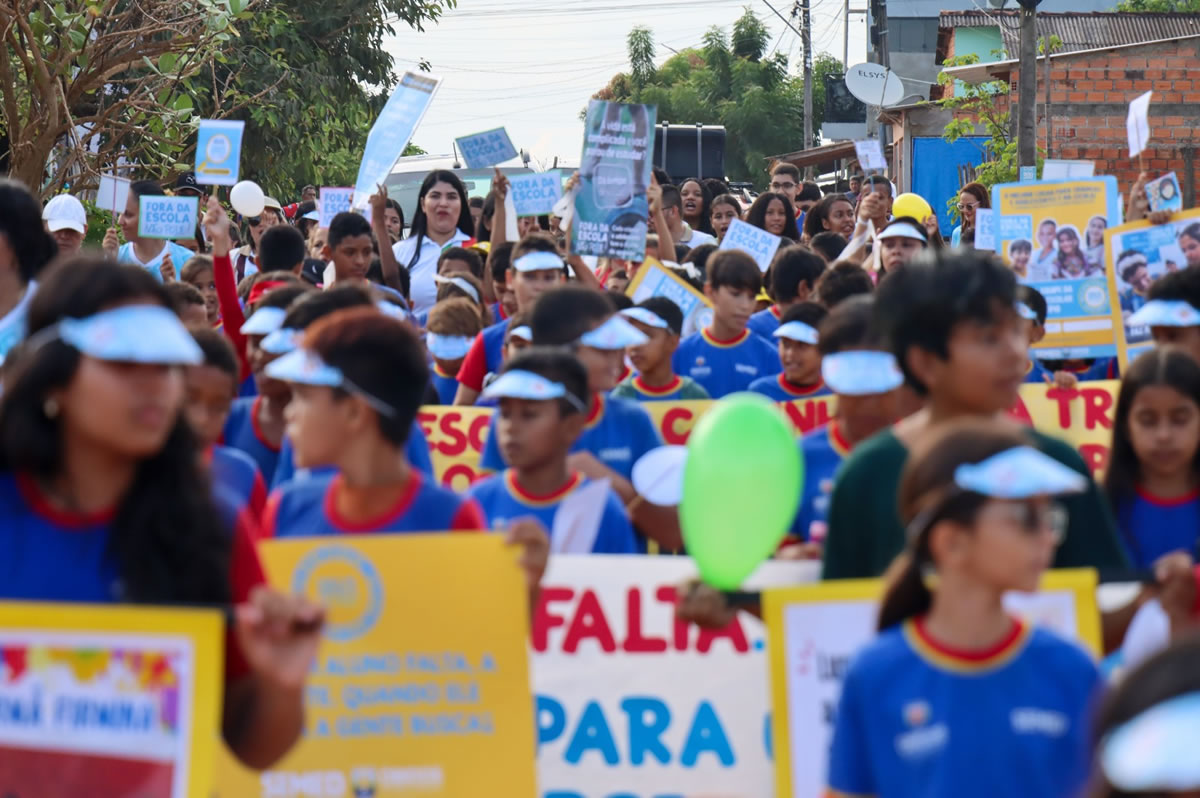 Na manhã desta sexta-feira, foi realizada uma caminhada com alunos do Ensino Fundamental das escolas Irmã Firmina, Dr. Raymundo Chaves, Frei Edmundo Bonckosch e Hugo Antônio Ferrari, para chamar a atenção da população sobre os prejuízos causados às crianças e adolescentes que deixam de frequentar a escola.