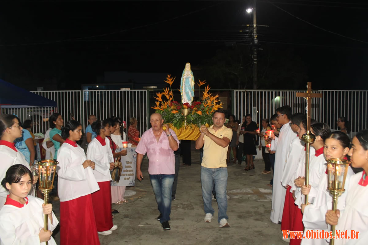 Passada a peste, mais ou menos no mês de setembro de 1855, o povo começou a construir a nova igreja, em um terreno alto, situado nos confins da agora cidade de Óbidos. Abriu-se um largo. Foram feitas subscrições e cada um doava o que podia em suas condições. A Igreja foi construída apenas com os donativos do povo, sem as doações que o Governo da Província costumava dar para a construção das igrejas paroquiais. Ficou decidido que a cada mês de setembro o povo faria uma grande festa e um arraial que serviria para arrecadar recursos.